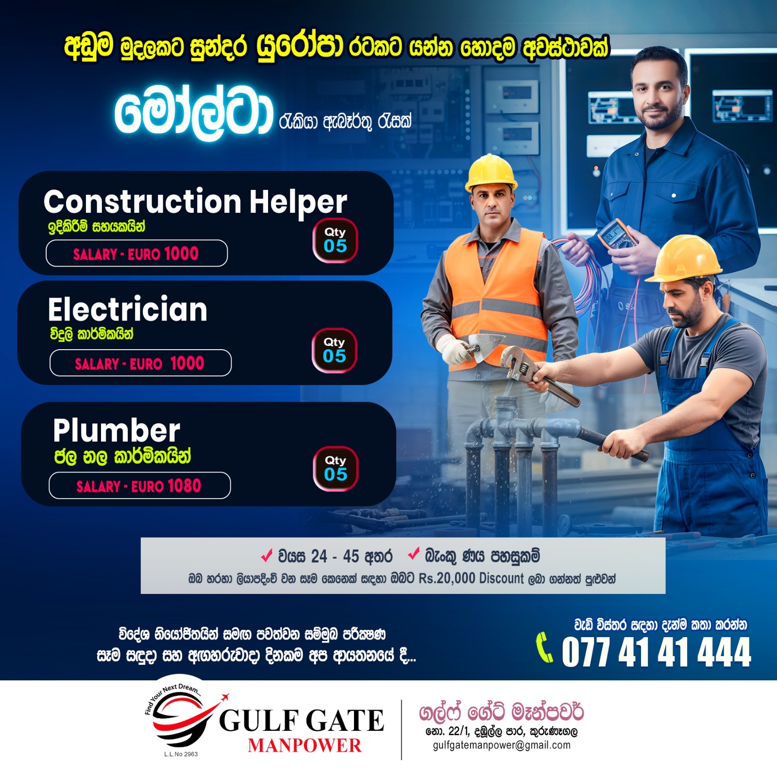 Construction Helper – Salary: EUR 1000 | Qty: 05