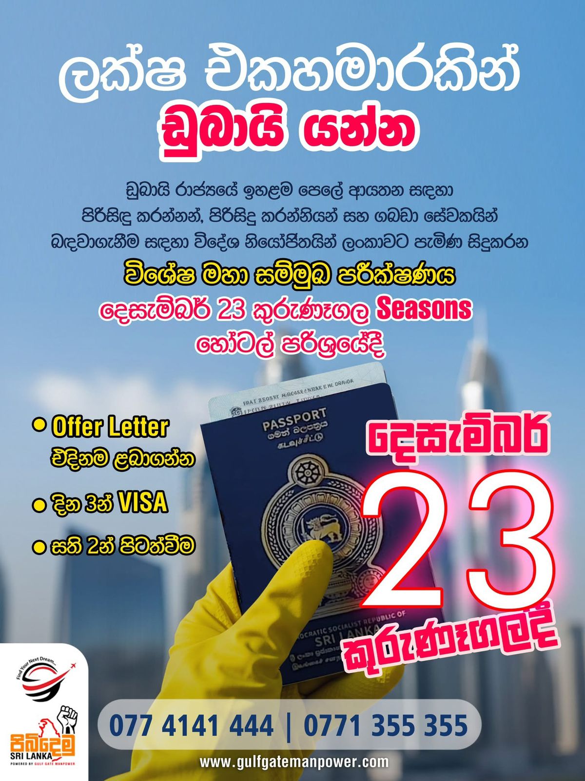 ලක්ෂ එක හමාරකින් Dubai යන්න , 23 වෙනිදා කුරුණෑගල Seasons එකට එන්න .