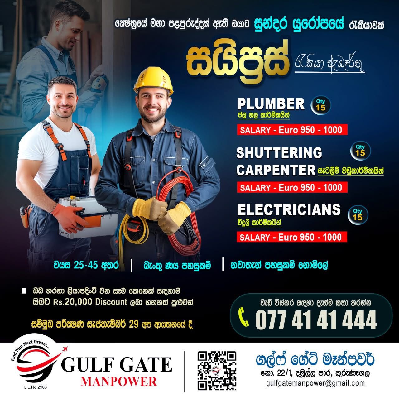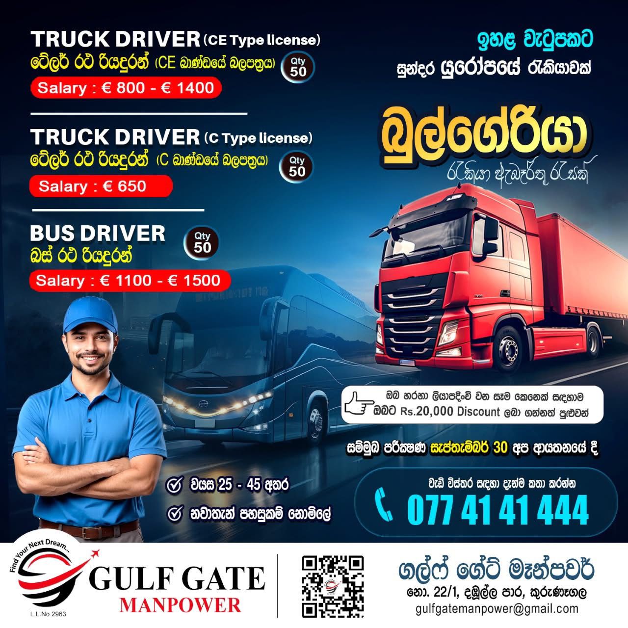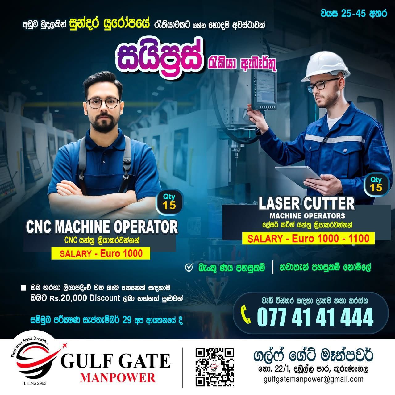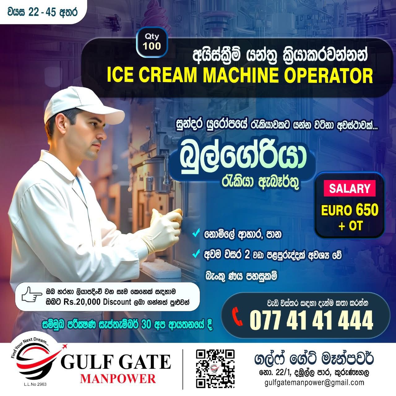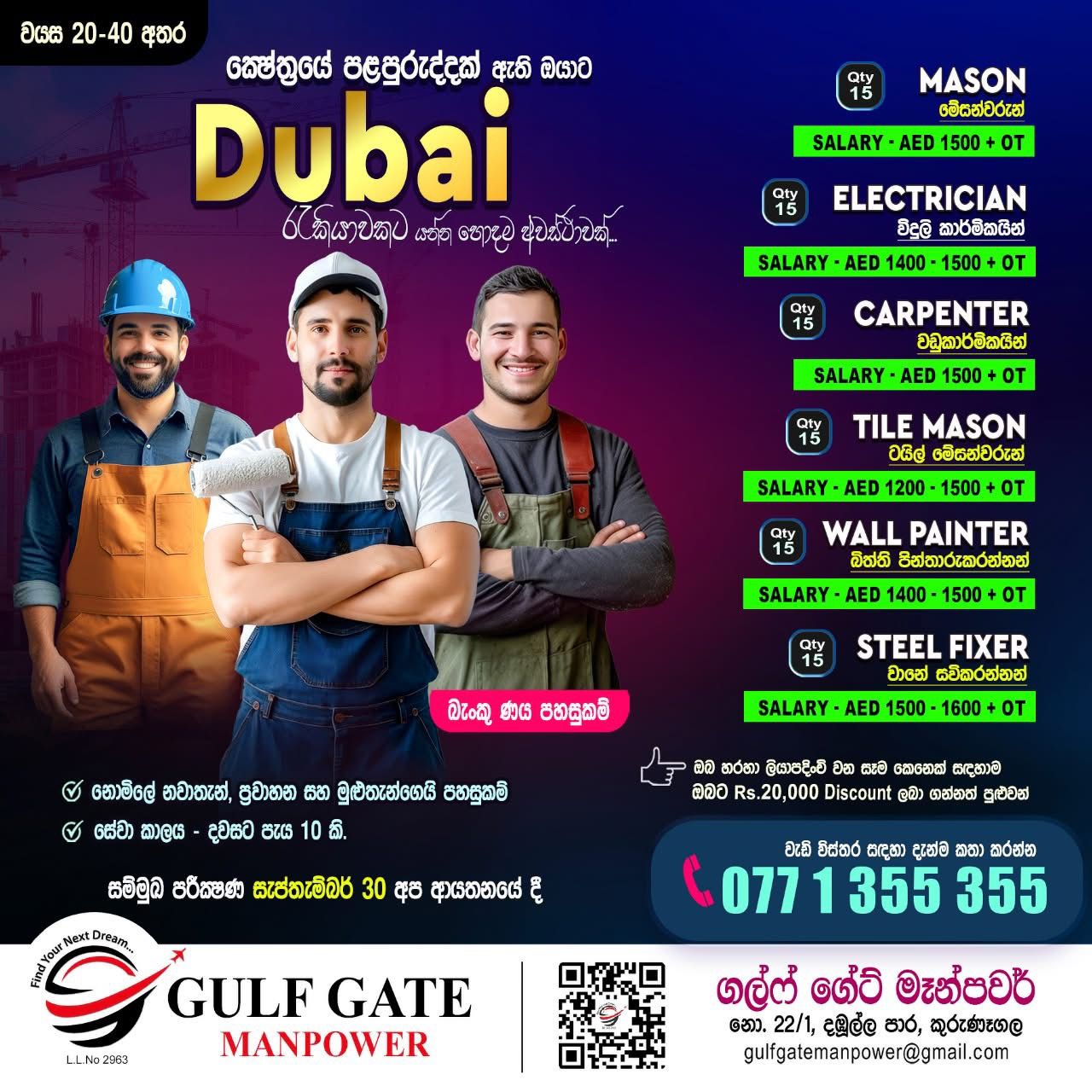කුරුණෑගල GULF GATE MANPOWER විදේශ රැකියා ආයතනය වෙතින් මැදපෙරදිග රැකියාවක් සොයන ඔබ ස...