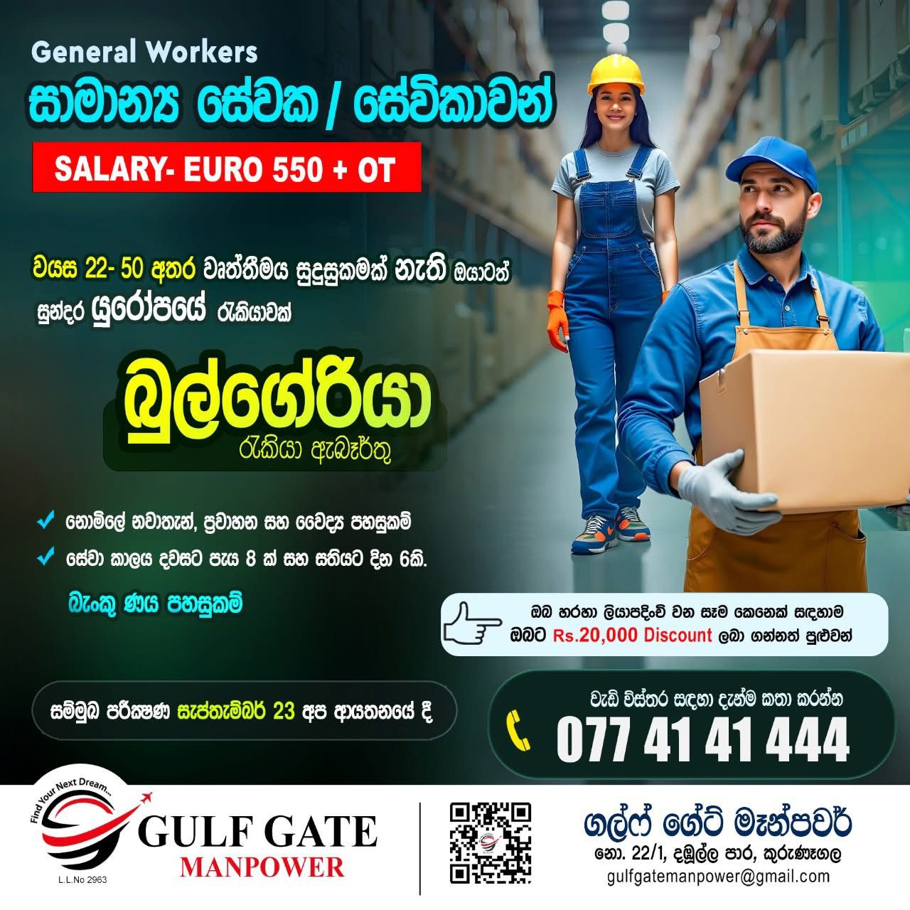 කුරුණෑගල GULF GATE MANPOWER විදේශ රැකියා ආයතනය වෙතින් සුන්දර යුරෝපයේ රැකියාවක් සොය...
