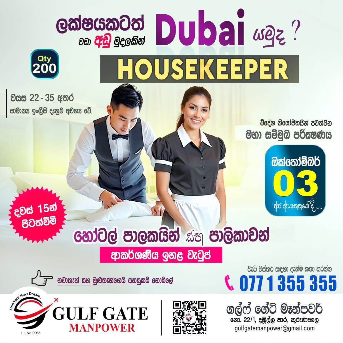 Are you ready to start a new chapter in Dubai? Gulf Gate Manpower is looking for 200 Housekeepers to join a reputable organization in Dubai!