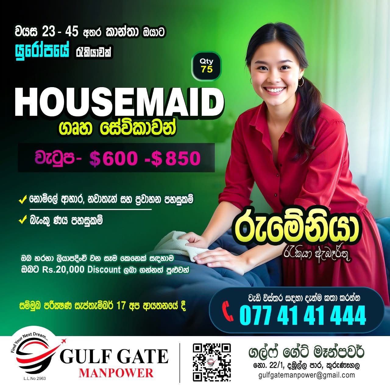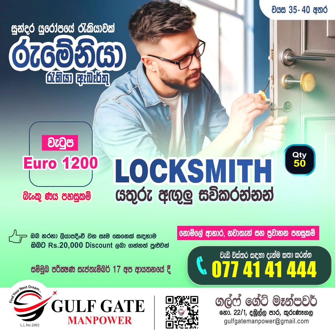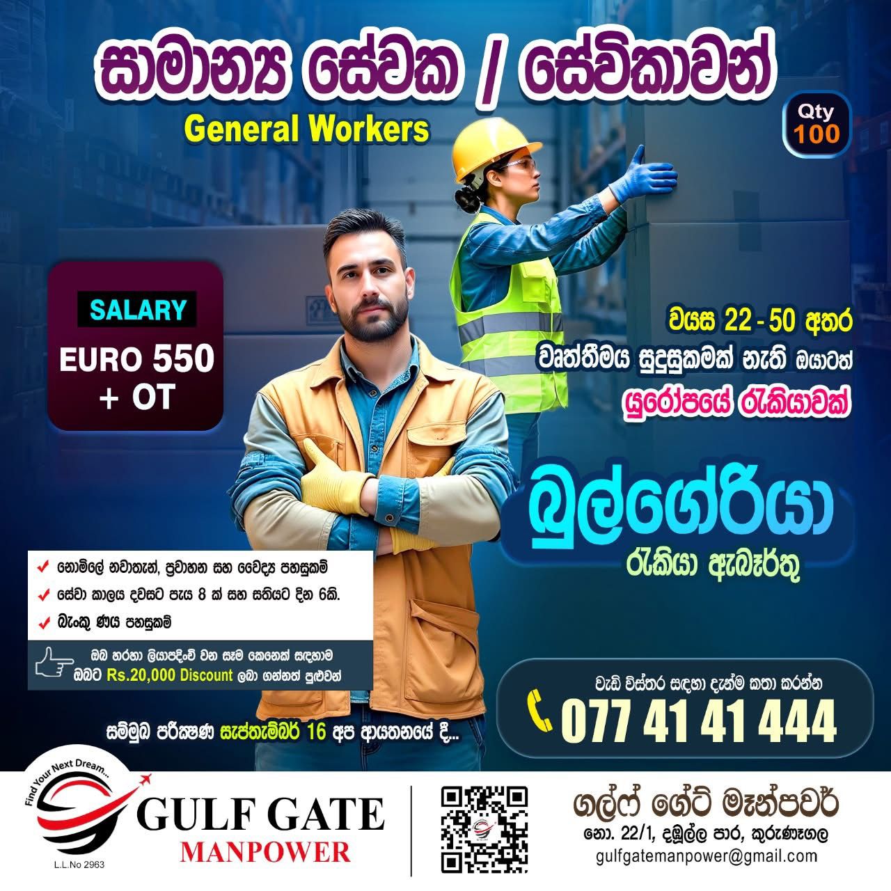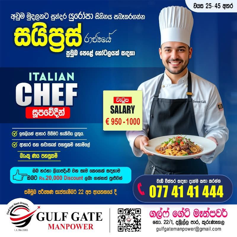 කුරුණෑගල GULF GATE MANPOWER විදේශ රැකියා ආයතනය වෙතින් සුන්දර යුරෝපයේ රැකියාවක් සොය...