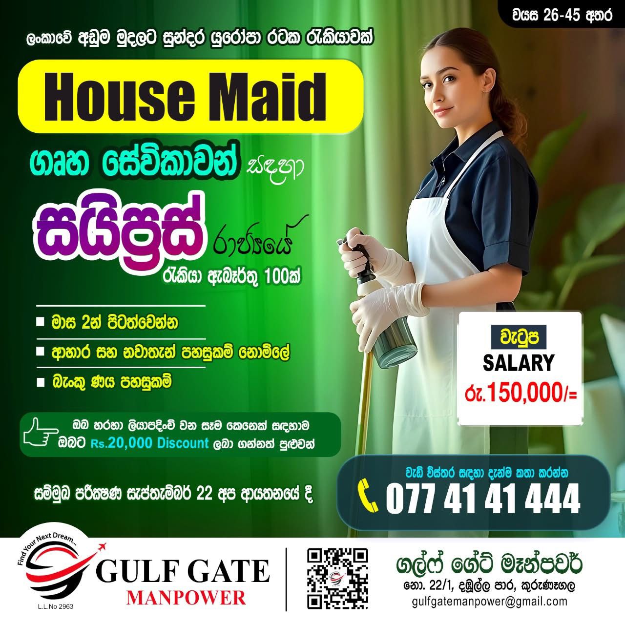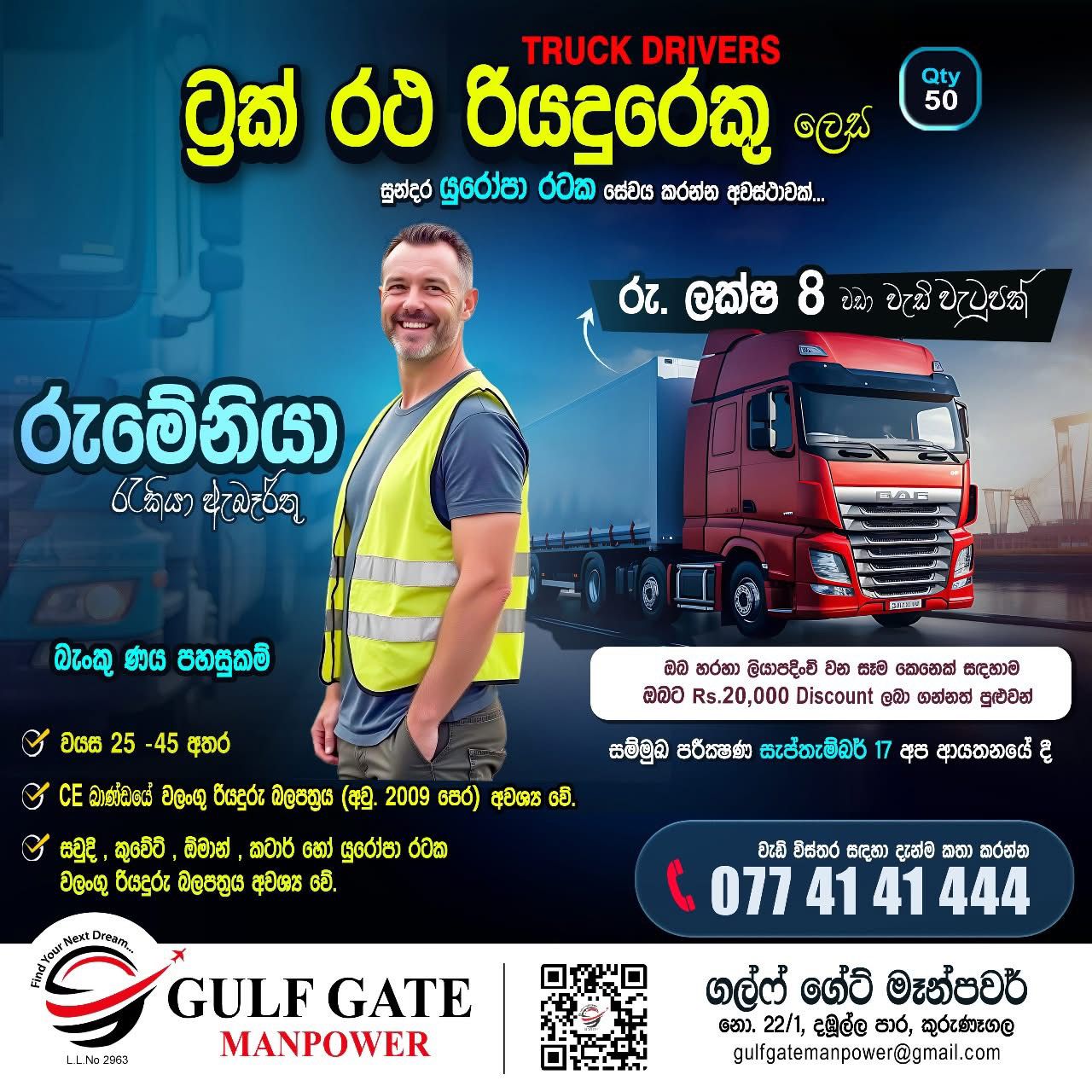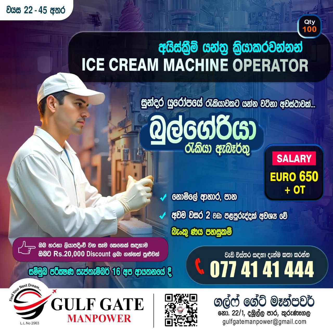 කුරුණෑගල GULF GATE MANPOWER විදේශ රැකියා ආයතනය වෙතින් සුන්දර යුරෝපයේ රැකියාවක් සොය...
