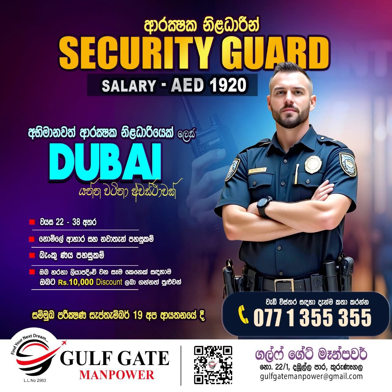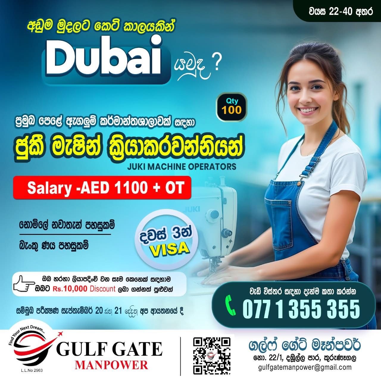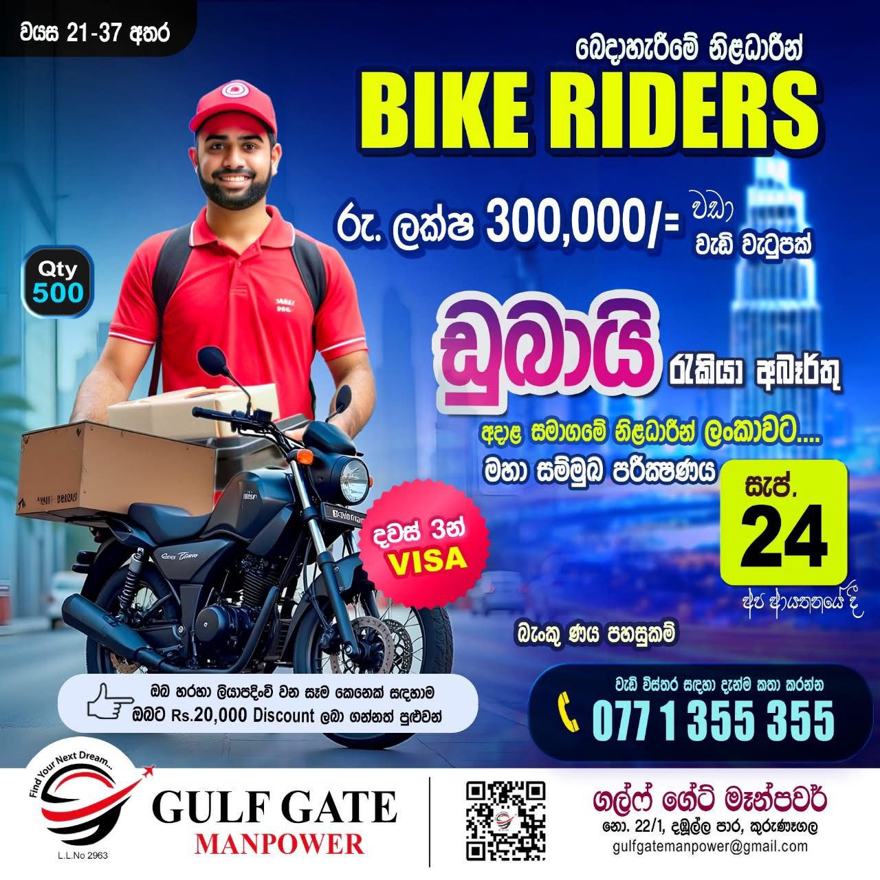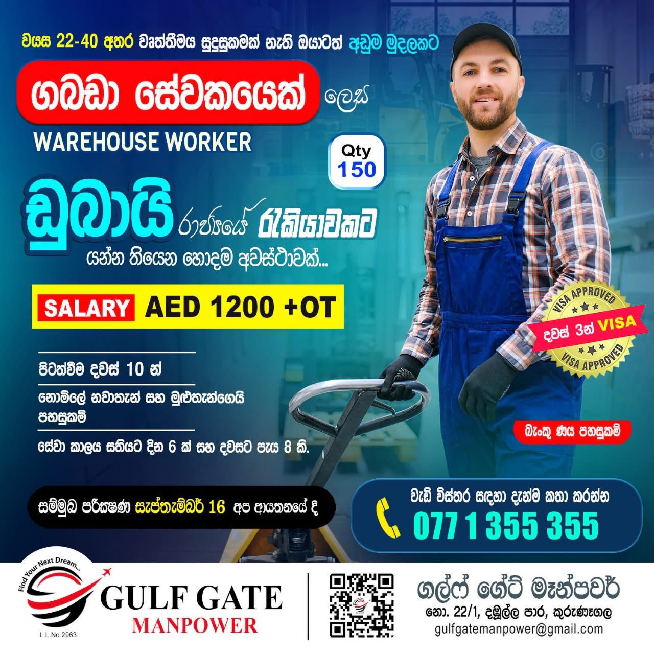 කුරුණෑගල GULF GATE MANPOWER විදේශ රැකියා ආයතනය වෙතින් මැදපෙරදිග රැකියාවක් සොයන ඔබ ස...