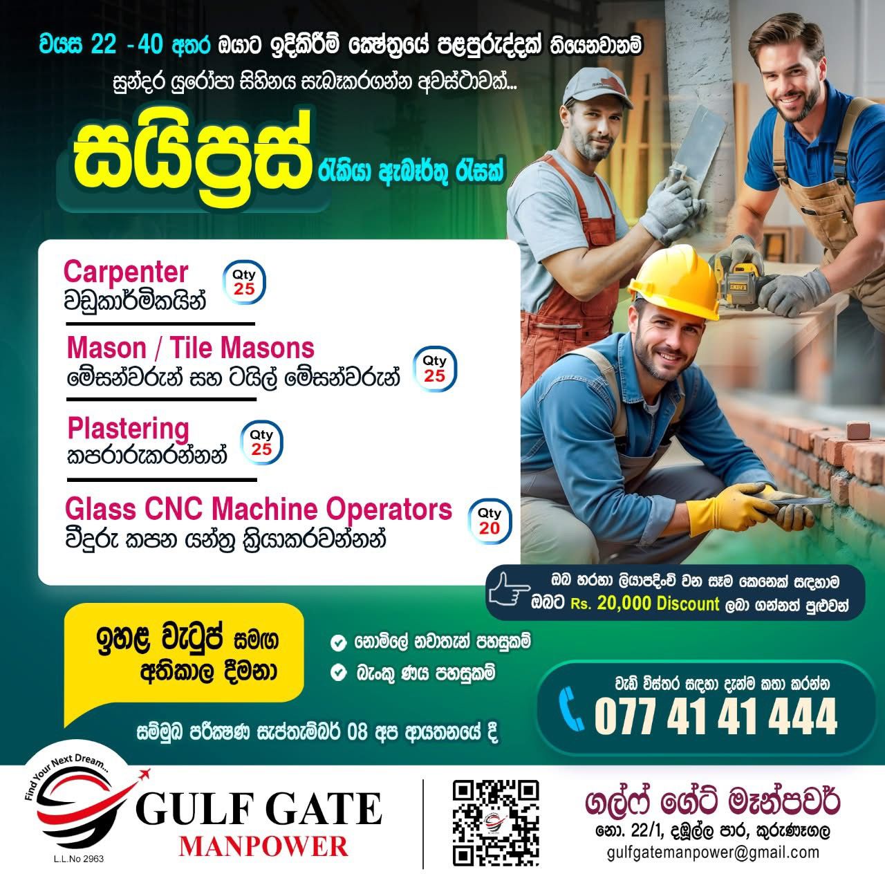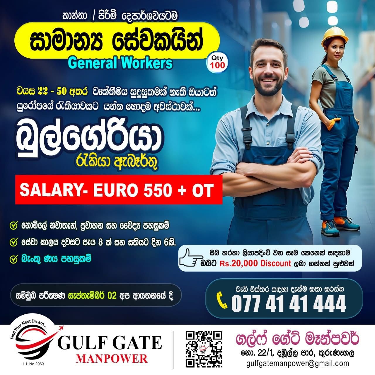 කුරුණෑගල GULF GATE MANPOWER විදේශ රැකියා ආයතනය වෙතින් සුන්දර යුරෝපයේ රැකියාවක් සොය...