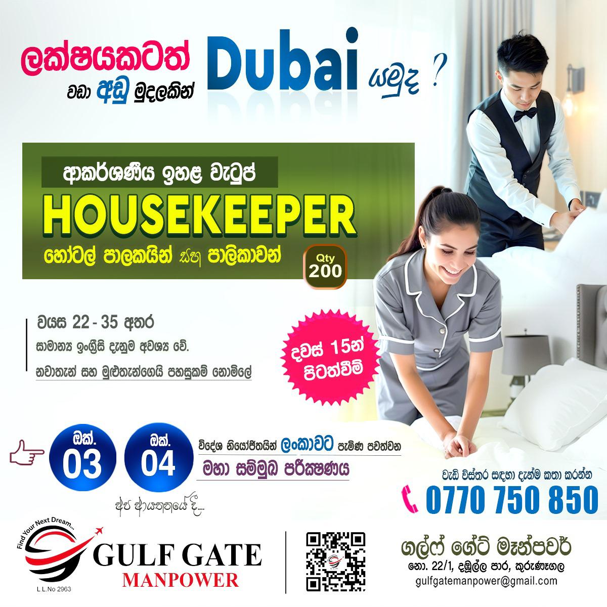 Are you ready to start a new chapter in Dubai? Gulf Gate Manpower is looking for 200 Housekeepers to join a reputable organization in Dubai!